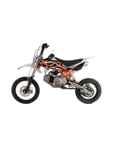 Pit bike dla dzieci od 7. roku życia – krok wyżej od modelu 90 TS. Silnik 107 cm³ z półautomatyczną skrzynią biegów. Niezawodna, czterosuwowa jednostka napędowa zapewnia długie godziny zabawy bez niespodzianek.