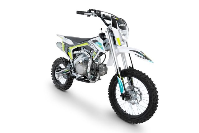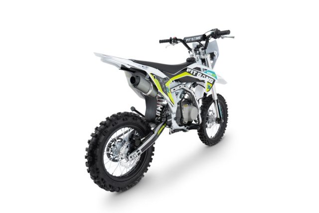 Pit bike dla młodzieży z manualną 4-biegową skrzynią i większymi kołami 17″/14″ niż w standardowych modelach 125. Elektryczny i nożny rozrusznik, atrakcyjny wygląd, niskie koszty utrzymania.